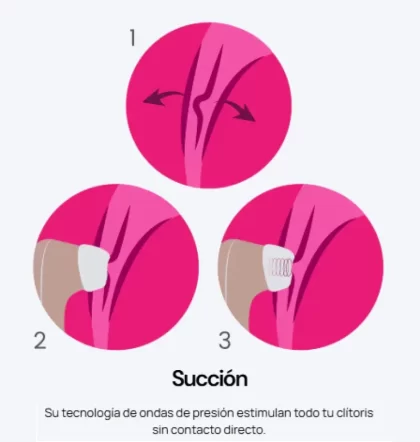 Aplica un poco de lubricante de agua en el clítoris para hacer aún más agradable la experiencia y coloca el cabezal de tu Satisfyer Pro 2 rodeándolo. Verás que tiene tres botones, uno redondo en la parte inferior para encender y apagar el juguete, uno de + para incrementar la intensidad de la succión, y uno de – para reducirla.